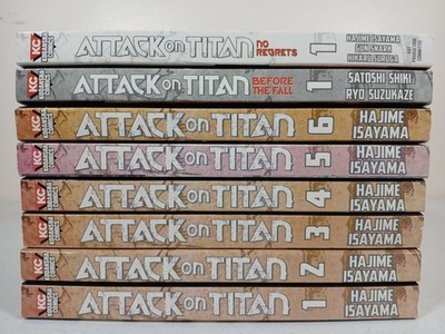 Attack on Titan Manga Vol 1-6 + Before the Fall 1 + No Regrets 1 AOT Isayama. Condition is Acceptable. Shipped with USPS Ground Advantage.