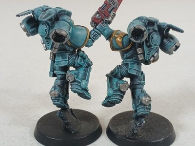 Squad of 6x Jump Pack Intercessors Painted, 1x Seargeant, Space Marines Blood. Condition is Used. Shipped with USPS Ground Advantage.